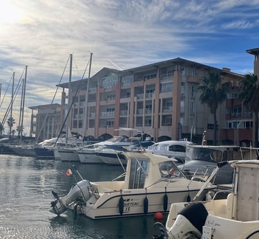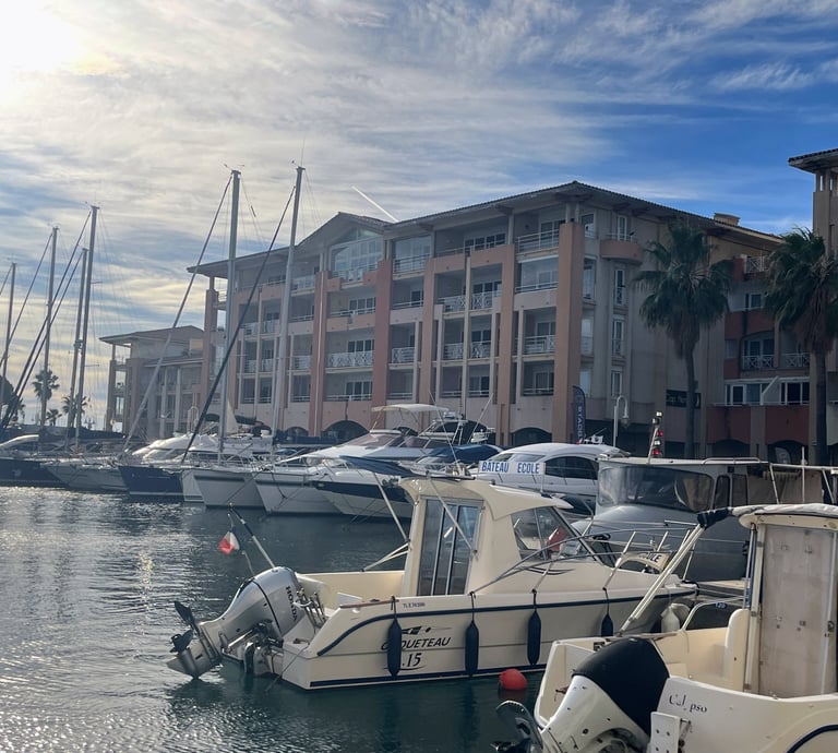 Nichée au 46 quai Caravello, au cœur du Port Fréjus, la résidence Cap Hermès bénéficie d’un emplacement privilégié entre la plage et la marina.